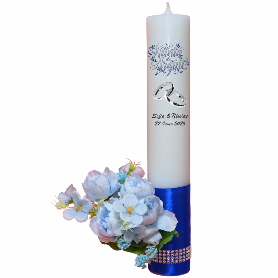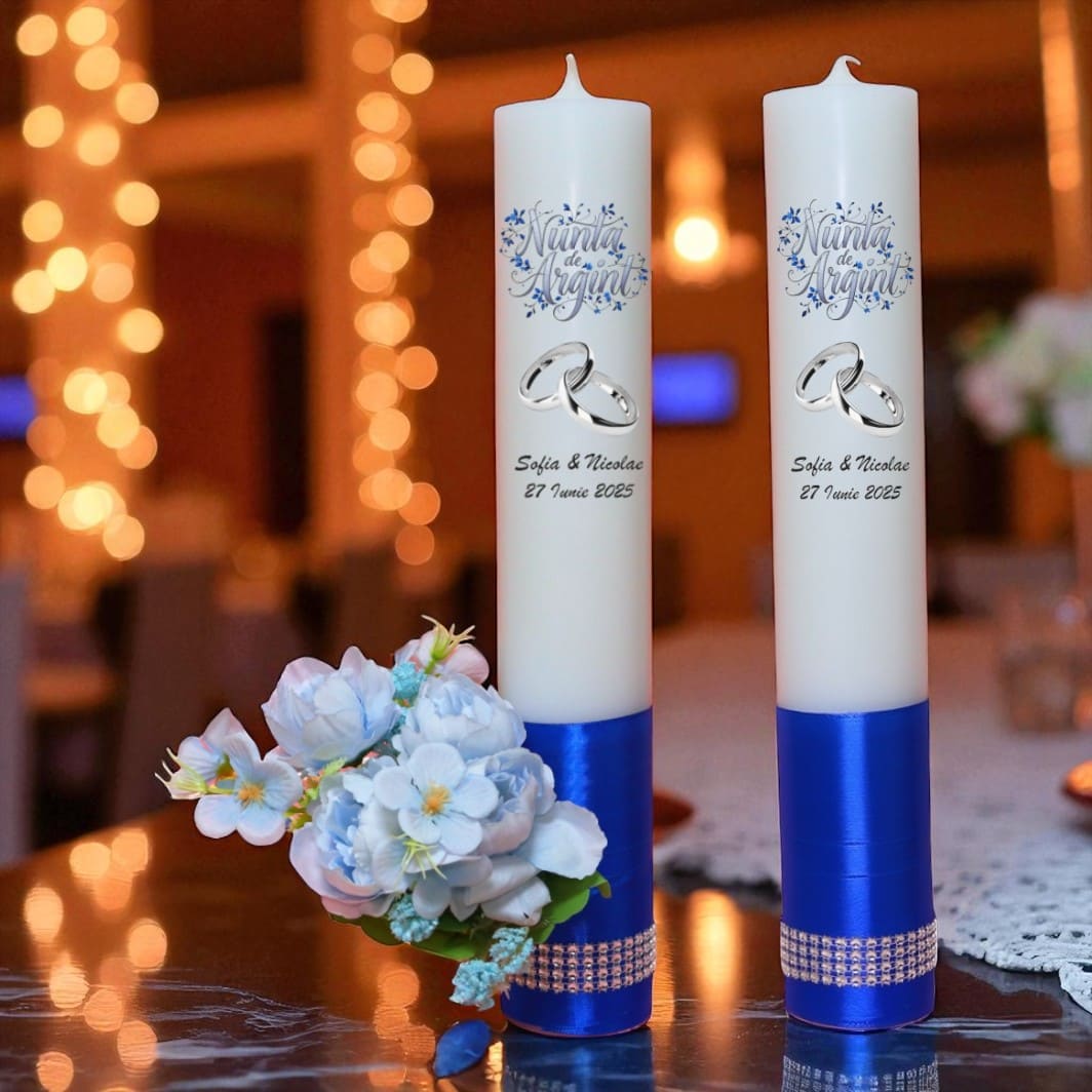 Set Lumanari, Nunta de Argint, Personalizate, 2 Bucati, Albastru, 35 cm, LNAG006