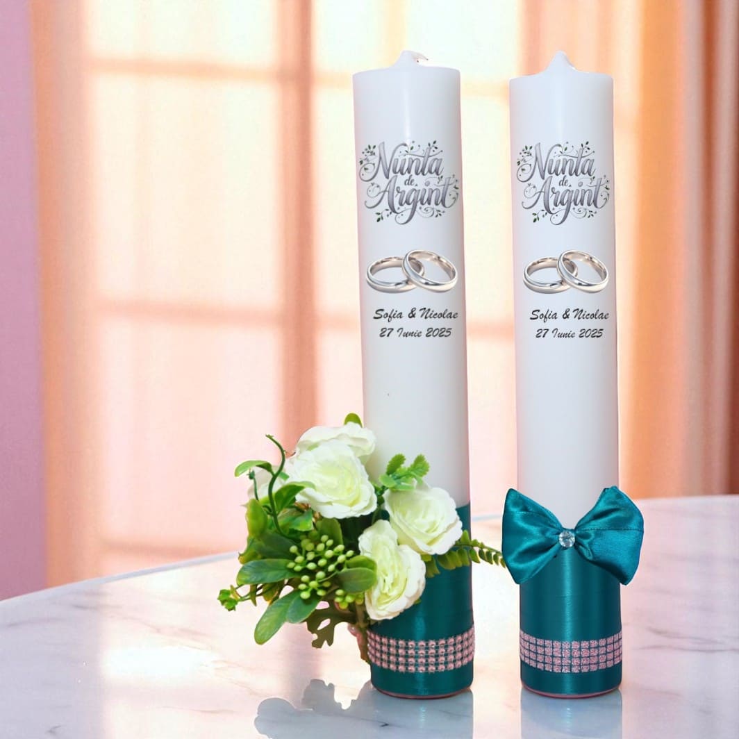 Fii primul care scrii o recenzie pentru „Set Lumanari, Nunta de Argint, Personalizate, 2 Bucati, Verde, 35 cm, LNAG007”
