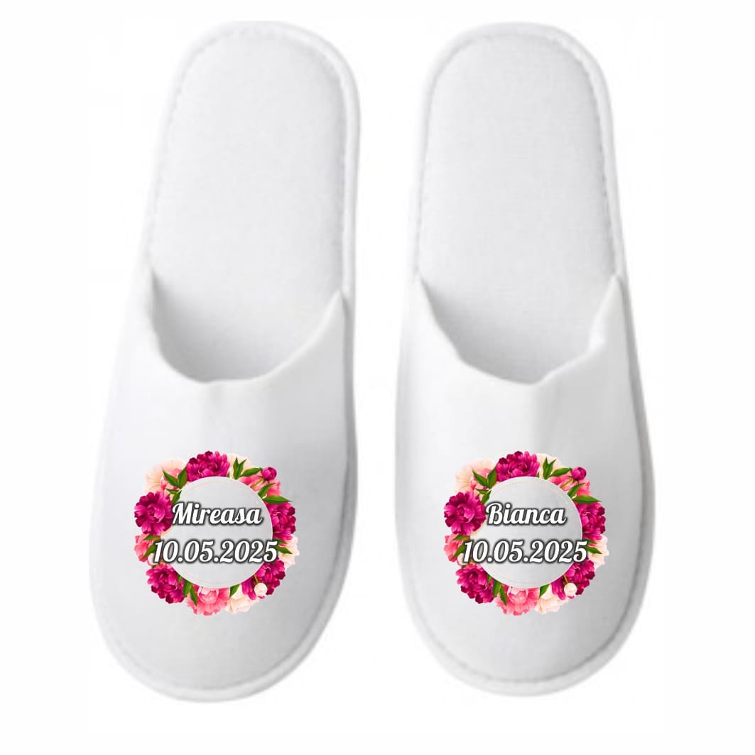 Papucii personalizati sunt de obicei purtati in timpul pregatirii pentru nunta sau dupa ceremonie, atunci cand mireasa doreste sa-si elibereze picioarele de pantofii de nunta mai rigizi si sa se simta mai confortabil.