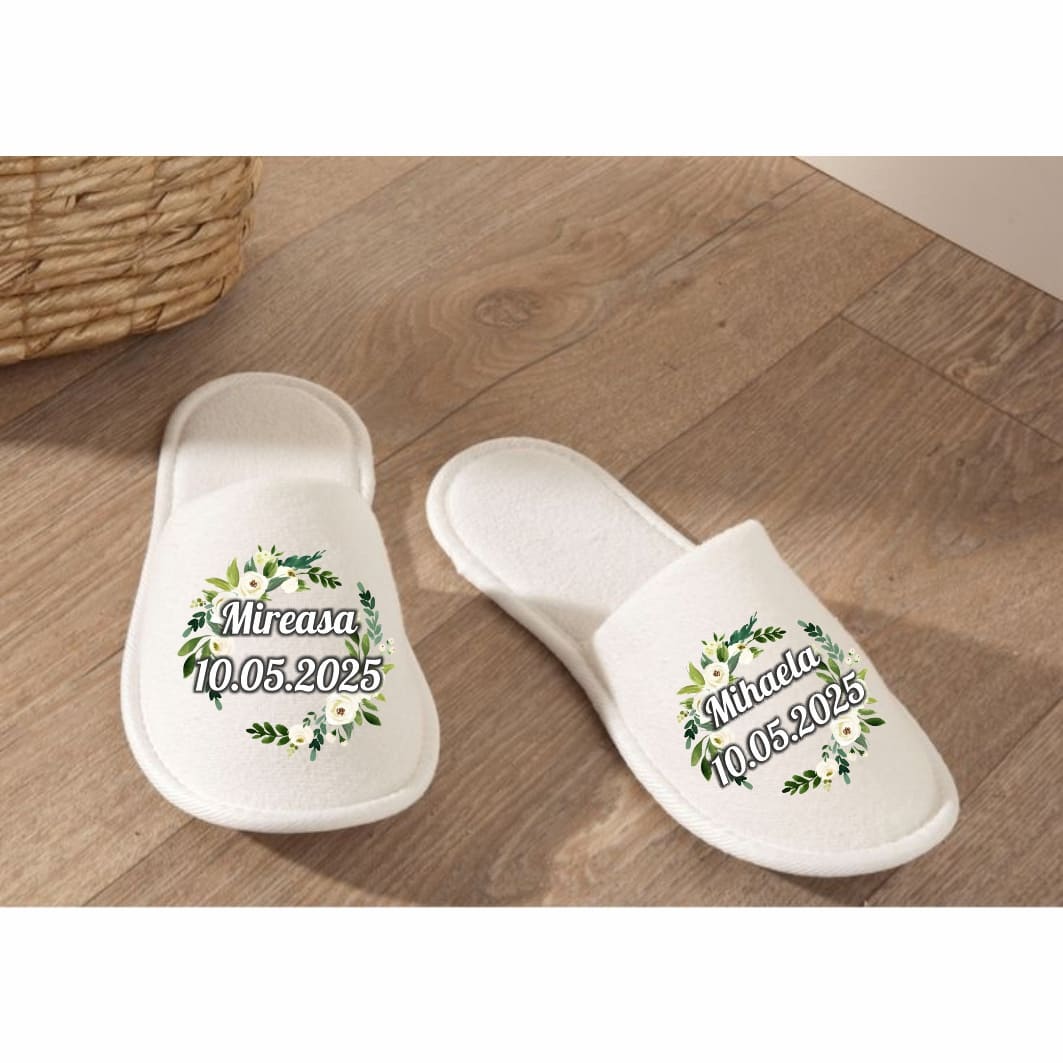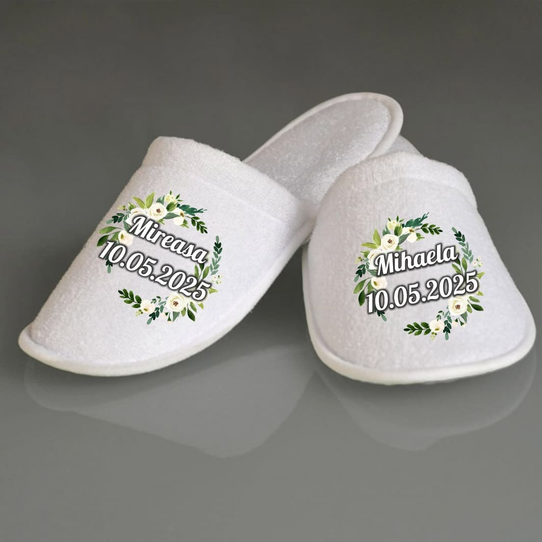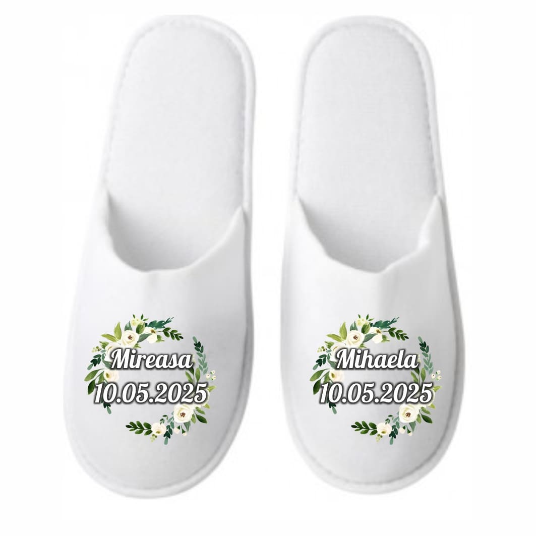 Papucii personalizati sunt de obicei purtati in timpul pregatirii pentru nunta sau dupa ceremonie, atunci cand mireasa doreste sa-si elibereze picioarele de pantofii de nunta mai rigizi si sa se simta mai confortabil.
